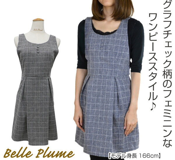 商品区分エプロンカテゴリから探すエプロン Belle Plume ノーブル チェック柄 ワンピース風 ポケット付レトロクラシックなグラフチェック柄とフェミニンなワンピーススタイルポケットが付いているからスマホやメモをさっと収納できます。
